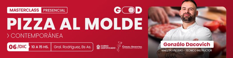 Reversioná la Pizza Argentina y llevá la Pizza al Molde a su versión Contemporánea. Te voy a mostrar cómo lograr una masa ligera y crocante con métodos de fermentación, selección de harinas, control de hidratación, temperatura y cocción. Una experiencia directa, profesional y pensada para que te lleves las herramientas para transformar tu Pizza.